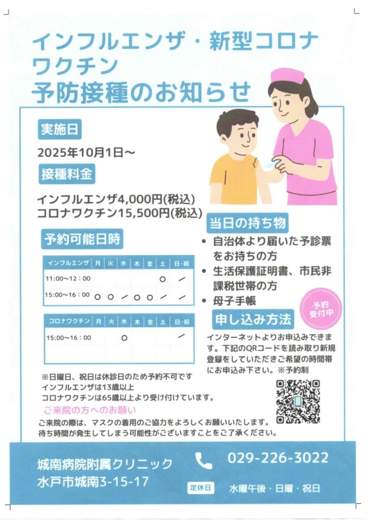 | インフルエンザワクチン | 3,500円 | 4,000円 |
